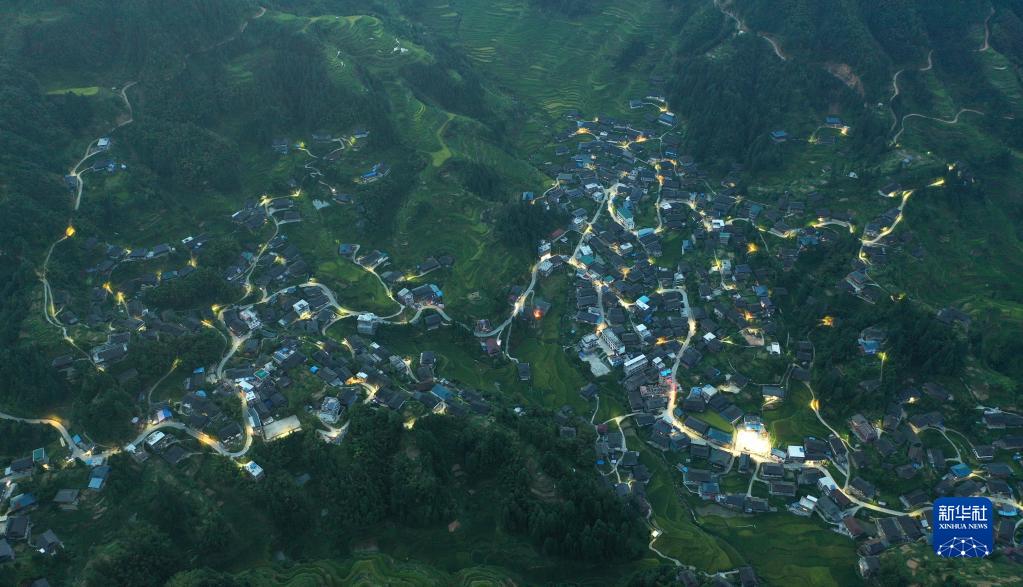 这是广西融水苗族自治县洞头镇洞头村夜景(无人机照片,8月24日摄)。 8月23日至29日是全国节能宣传周,主题是“节能降碳,绿色发展”。随着脱贫攻坚战的全面胜利和乡村振兴战略的实施,广西大石山区的千山万弄里竖起一盏盏太阳能路灯,这些路灯不仅在夜间为村民照亮山路,更为村民点亮改变家乡面貌、振兴乡村的希望。 新华社记者 黄孝邦 摄