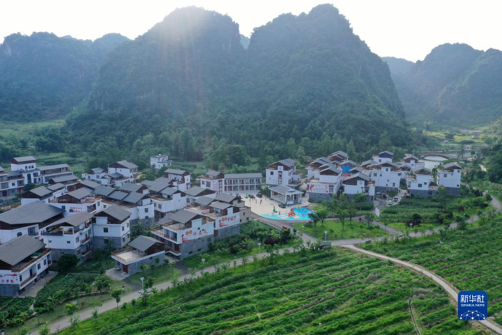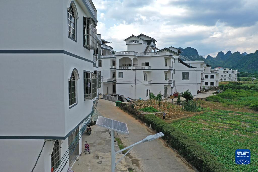 这是广西百色市田阳区五村镇巴某村的民居和太阳能路灯(无人机照片,2020年6月4日摄)。 8月23日至29日是全国节能宣传周,主题是“节能降碳,绿色发展”。随着脱贫攻坚战的全面胜利和乡村振兴战略的实施,广西大石山区的千山万弄里竖起一盏盏太阳能路灯,这些路灯不仅在夜间为村民照亮山路,更为村民点亮改变家乡面貌、振兴乡村的希望。 新华社记者 陆波岸 摄
