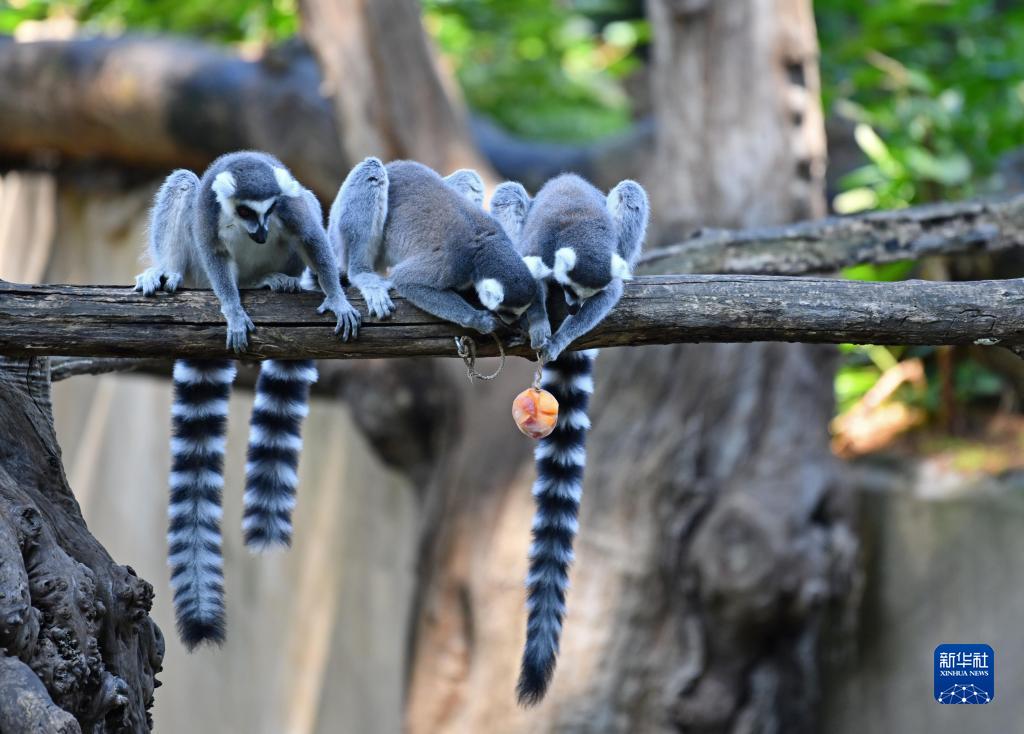 8月26日,意大利罗马动物园的工作人员为环尾狐猴送去冰冻果蔬。 夏日炎炎,意大利罗马动物园的工作人员为动物提供冰冻或冰镇食物,帮助它们解暑。 新华社记者 金马梦妮 摄