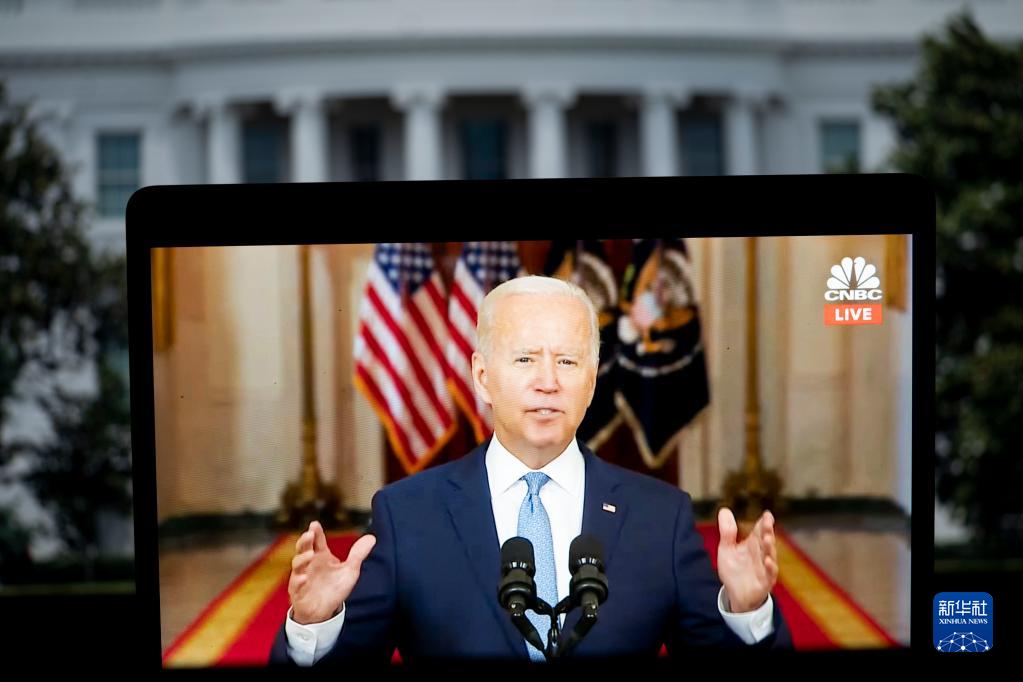 这张8月31日拍摄的屏幕显示的是美国总统拜登在华盛顿白宫发表讲话。 美国总统拜登31日在白宫表示,结束阿富汗战争是正确的决定,美国将继续展开反恐行动。最新民调显示,近七成美国民众认为美国未能在阿富汗实现目标。 新华社记者 刘杰 摄 |