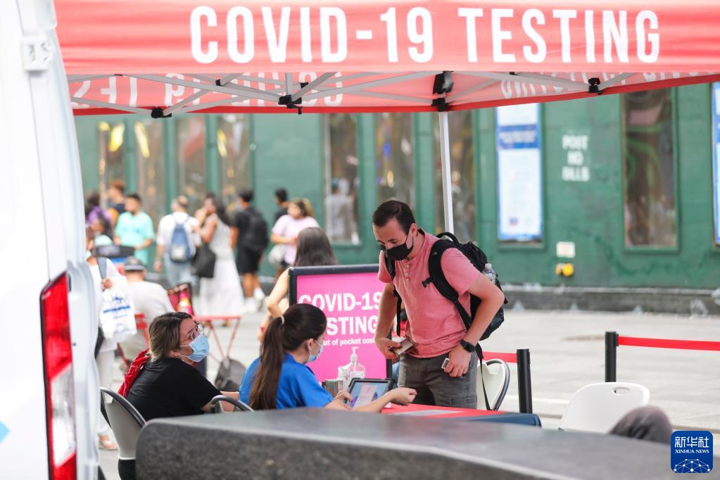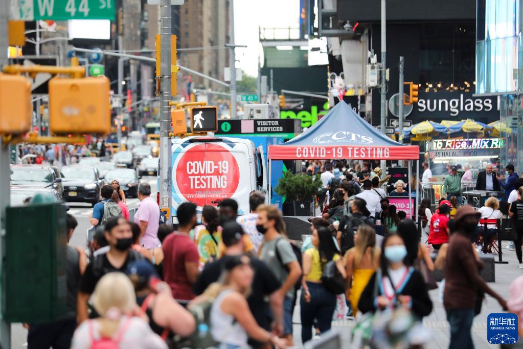 这是8月31日拍摄的美国纽约时报广场上一处流动新冠检测点。 约翰斯·霍普金斯大学数据显示,美国截至8月23日至29日的7天内,累计新增新冠确诊病例108.9万例,累计死亡病例9036例。 新华社记者 王迎 摄