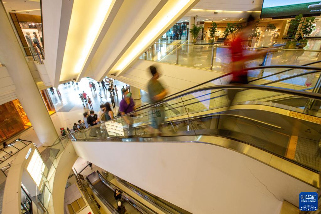 9月1日,人们在泰国曼谷一家商场乘扶梯。新华社记者王腾摄