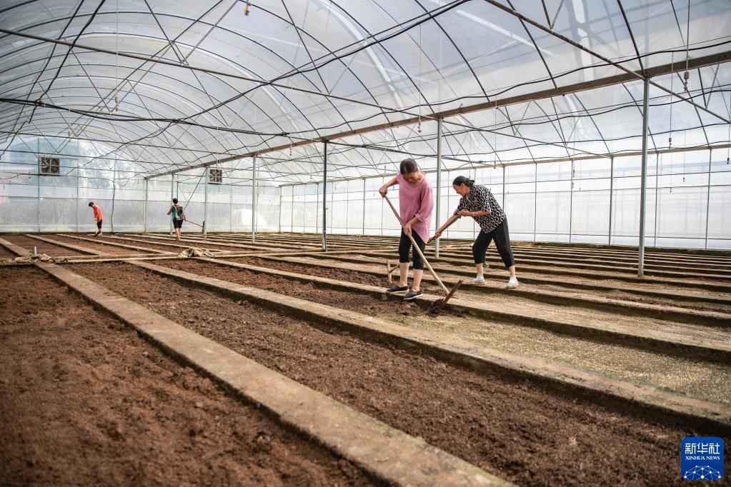 9月2日,在巫溪县一处脱毒马铃薯繁育中心的大棚,工作人员在翻整土壤。