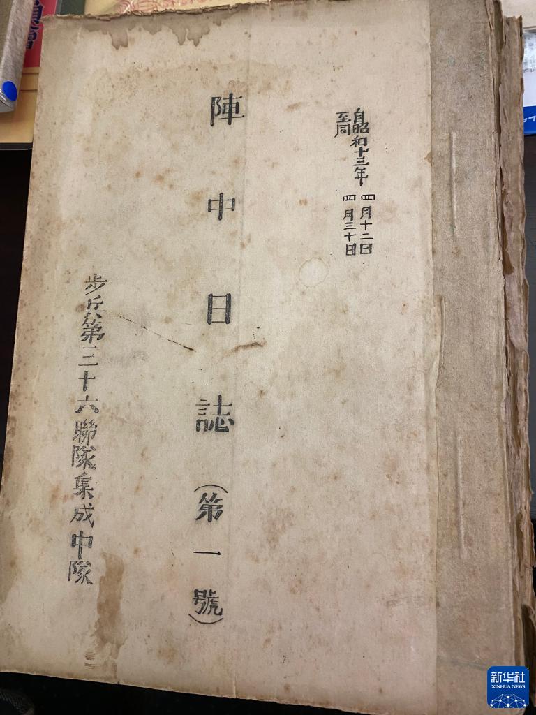 这是8月5日日本爱知县圆光寺住持大东仁送到东京的与侵华日军相关的历史资料《步兵第36连队集成中队 阵中日志》。新华社记者 郭丹 摄
