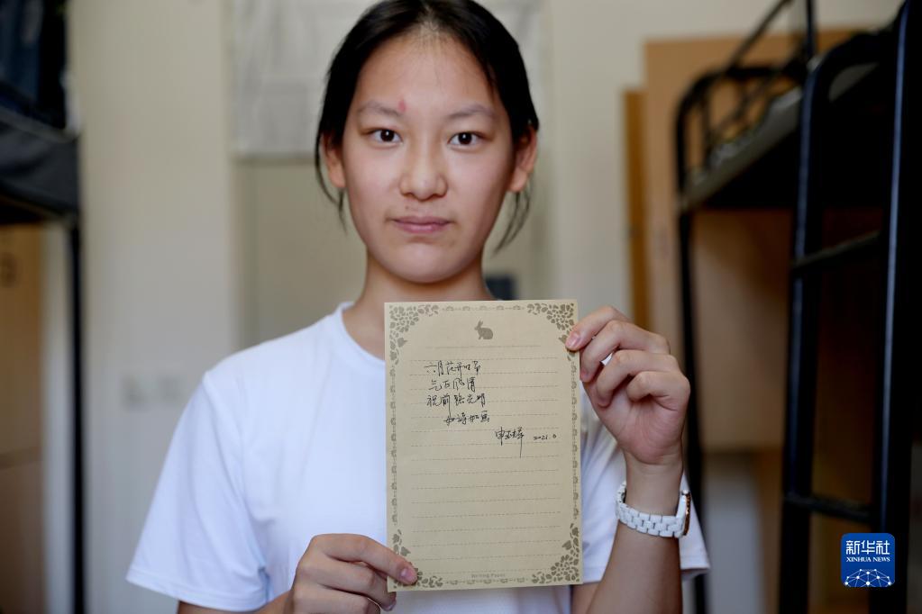 华东师范大学光华书院的新生、来自重庆的贾丛尔展示高中班主任给自己的寄语(8月30日摄)。 近日,上海各高校陆续迎来2021年新生报到。由于疫情防控,家长和陪同人员不能入校,很多新生独自从故乡来到大学校园。记者请华东师范大学的几名本科新生打开行李箱,展示他们最珍视、最有意义的随行物品,家乡特产、民族服饰、老师寄语、家人的礼物、长辈的祝福……满满的爱,将陪伴随着新生们在上海开始大学生活,开启人生的新阶段。 新华社记者 王翔 摄 |