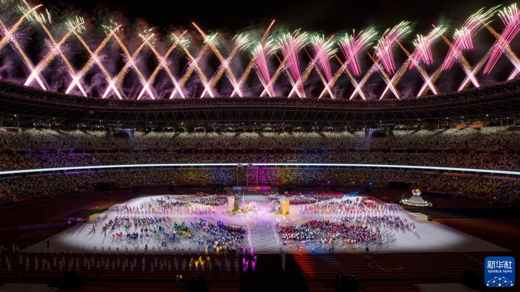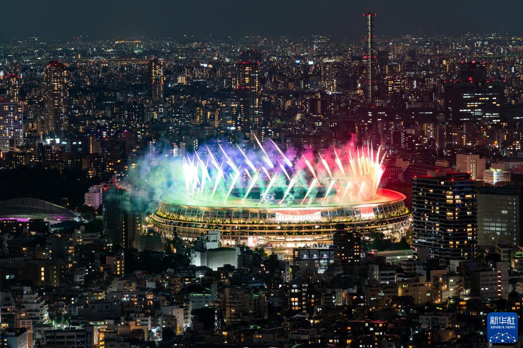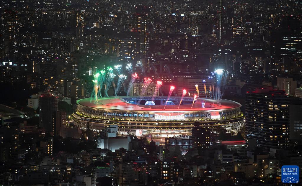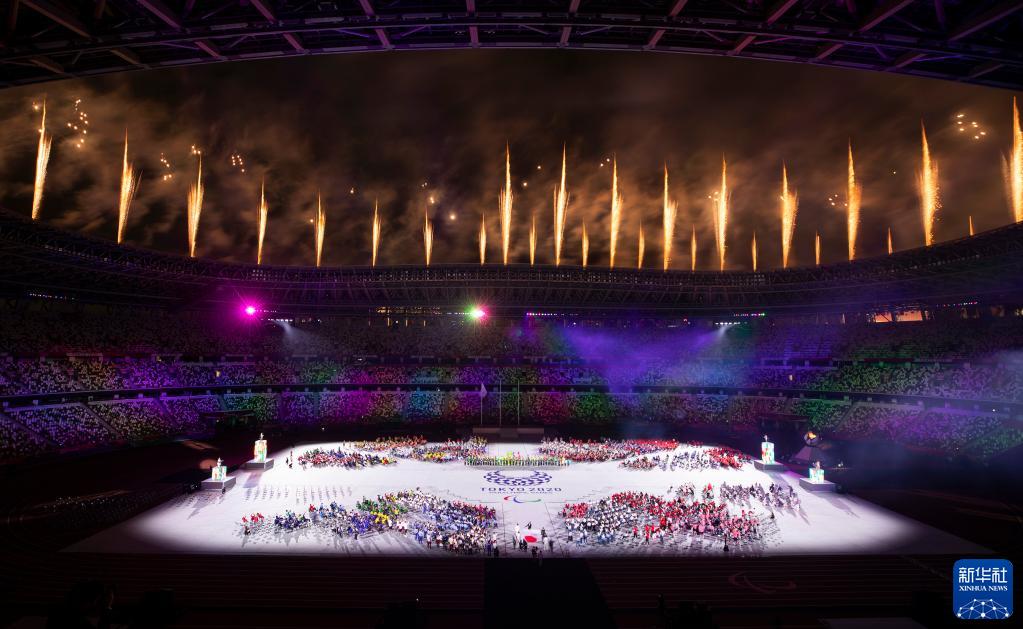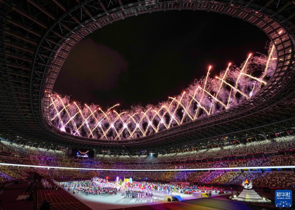 9月5日,第16届夏季残疾人奥林匹克运动会闭幕式在日本东京举行。 这是闭幕式上的焰火表演。 新华社记者 胡虎虎 摄