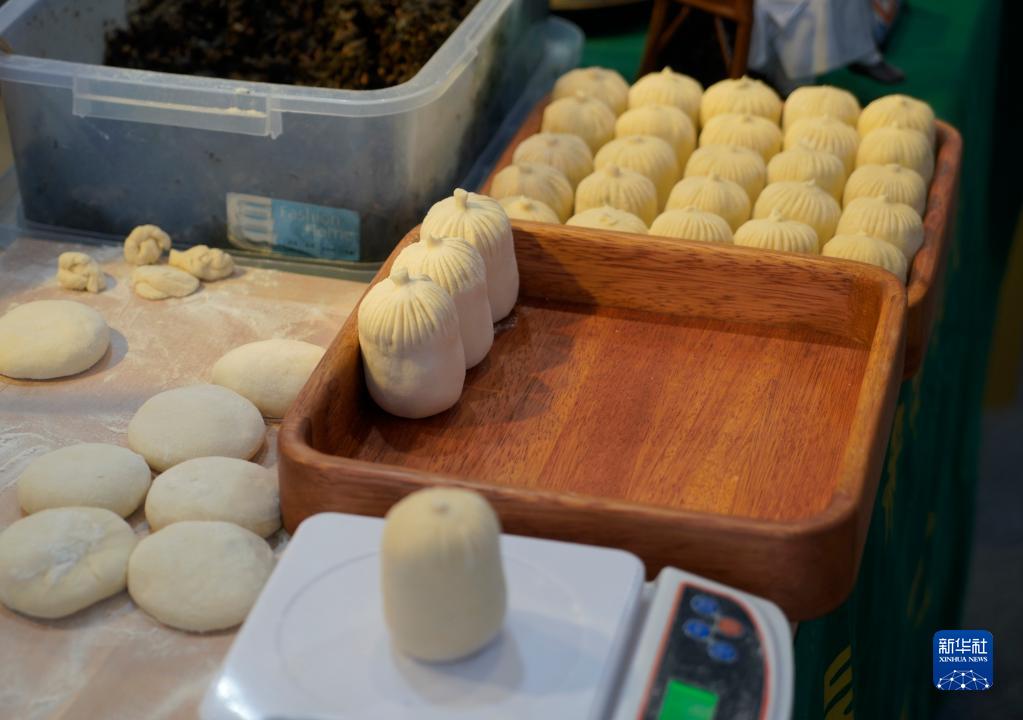 9月3日在服贸会首钢园区文旅服务展馆展示的传统冬菜包子。