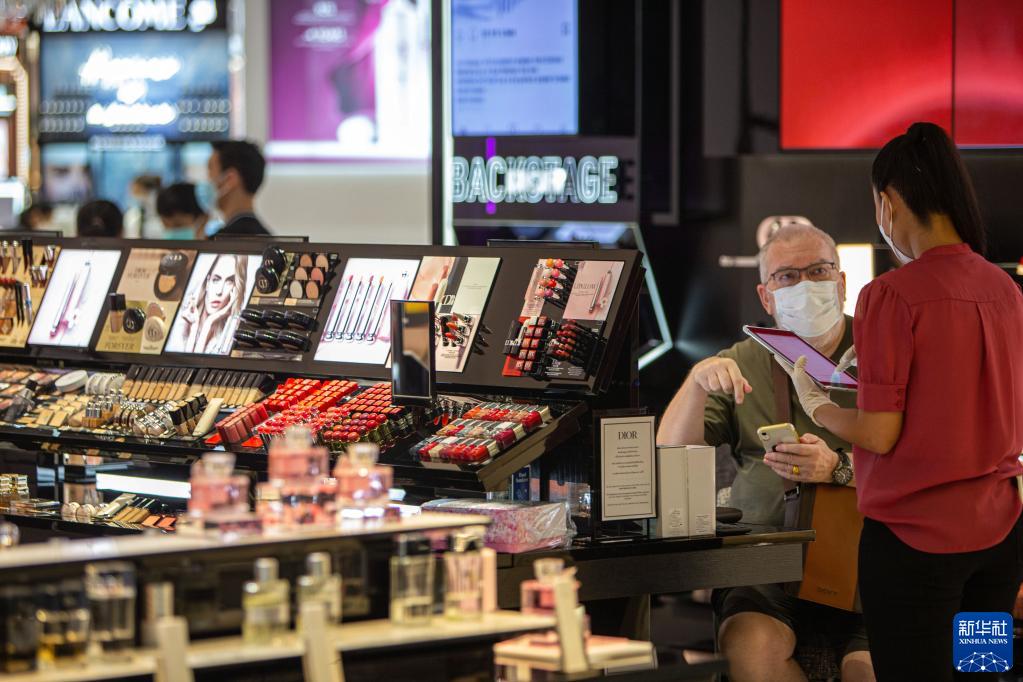 9月1日,顾客在泰国曼谷一家商场购买化妆品。