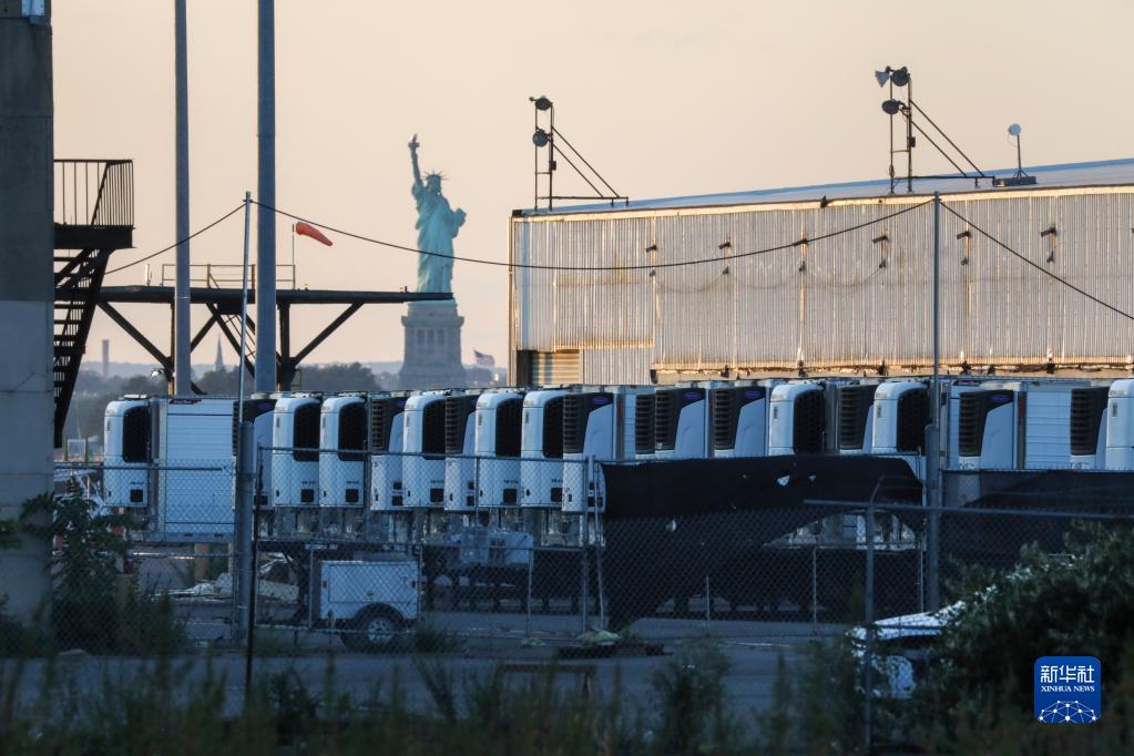 这是9月6日在美国纽约布鲁克林拍摄的一处临时停尸场内存放新冠患者遗体的冷藏车。 美国约翰斯·霍普金斯大学6日发布的新冠疫情最新统计数据显示,美国累计确诊病例超过4000万例。截至美国东部时间6日15时21分(北京时间7日3时21分),美国累计确诊病例40003101例,累计死亡病例648935例。 新华社记者 王迎 摄