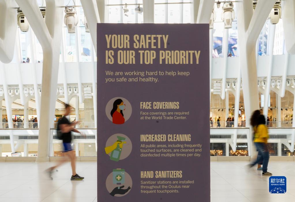 9月6日,人们走在美国纽约的世贸中心车站内。 美国约翰斯·霍普金斯大学6日发布的新冠疫情最新统计数据显示,美国累计确诊病例超过4000万例。截至美国东部时间6日15时21分(北京时间7日3时21分),美国累计确诊病例40003101例,累计死亡病例648935例。 新华社记者 王迎 摄