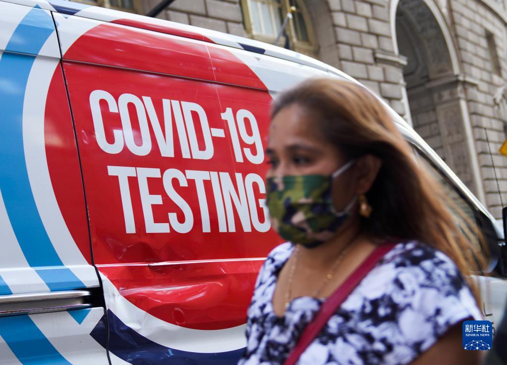 9月6日,一名女子从美国纽约的移动新冠检测点旁经过。 美国约翰斯·霍普金斯大学6日发布的新冠疫情最新统计数据显示,美国累计确诊病例超过4000万例。截至美国东部时间6日15时21分(北京时间7日3时21分),美国累计确诊病例40003101例,累计死亡病例648935例。 新华社记者 王迎 摄
