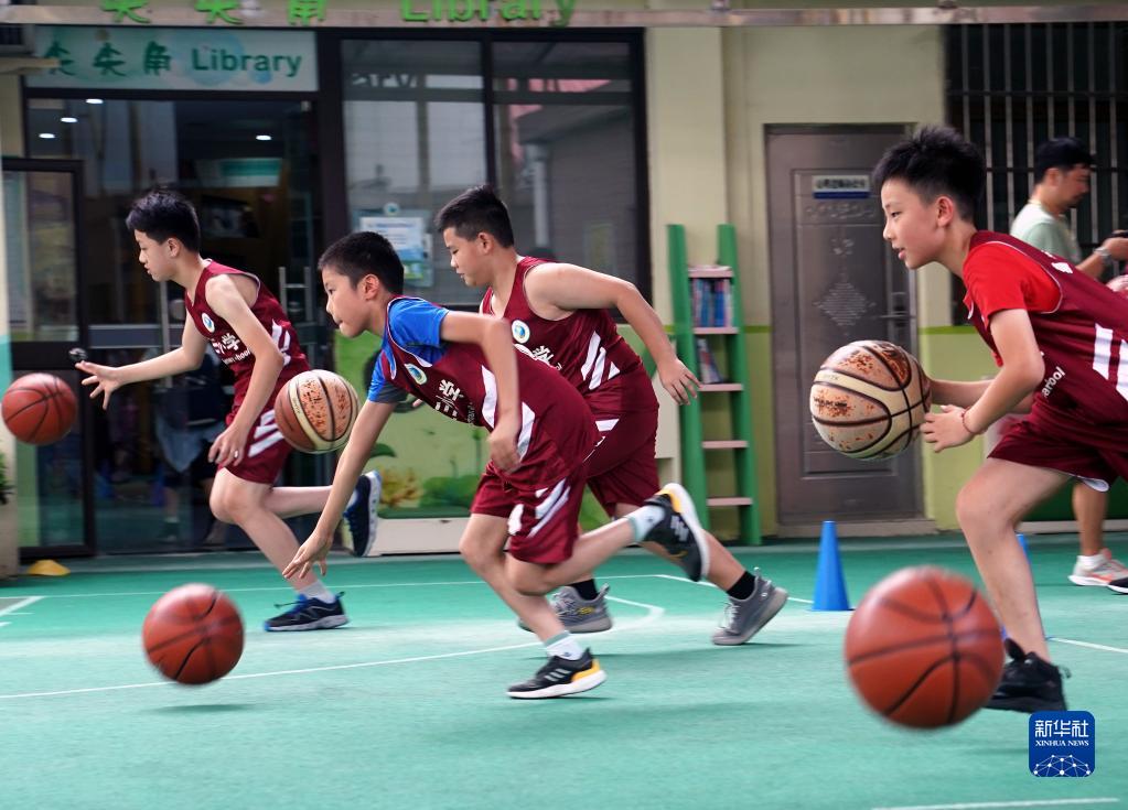 9月7日,黄浦区复兴东路第三小学的学生们在“乐系列”的篮球兴趣课上运动。