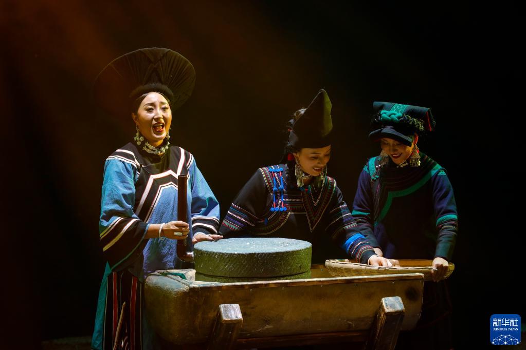 9月7日,演员在表演原生歌集《赶集》。 当日,“剧美天府 五彩凉山”2021四川凉山精品文艺展演暨文旅推介周活动的演出之一——大凉山原生歌集《赶集》在位于四川省成都市的四川大剧院小剧场上演。 据介绍,《赶集》以四川省凉山彝族自治州的彝族歌曲为素材,利用现代音乐理念进行节奏和氛围的营构。表演者均来自大凉山,其中一些还是当地非遗传承人。《赶集》旨在深度挖掘凉山少数民族音乐资源,推动凉山少数民族文化传承与创新。 新华社记者 沈伯韩 摄
