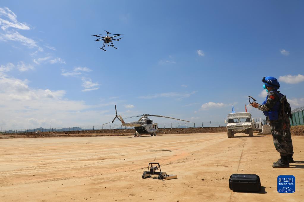 9月8日,在“共同命运-2021”国际维和实兵演习专业分训中,参演官兵操作搜排爆无人机对临时基地进行搜索。 新华社记者 刘芳 摄 |