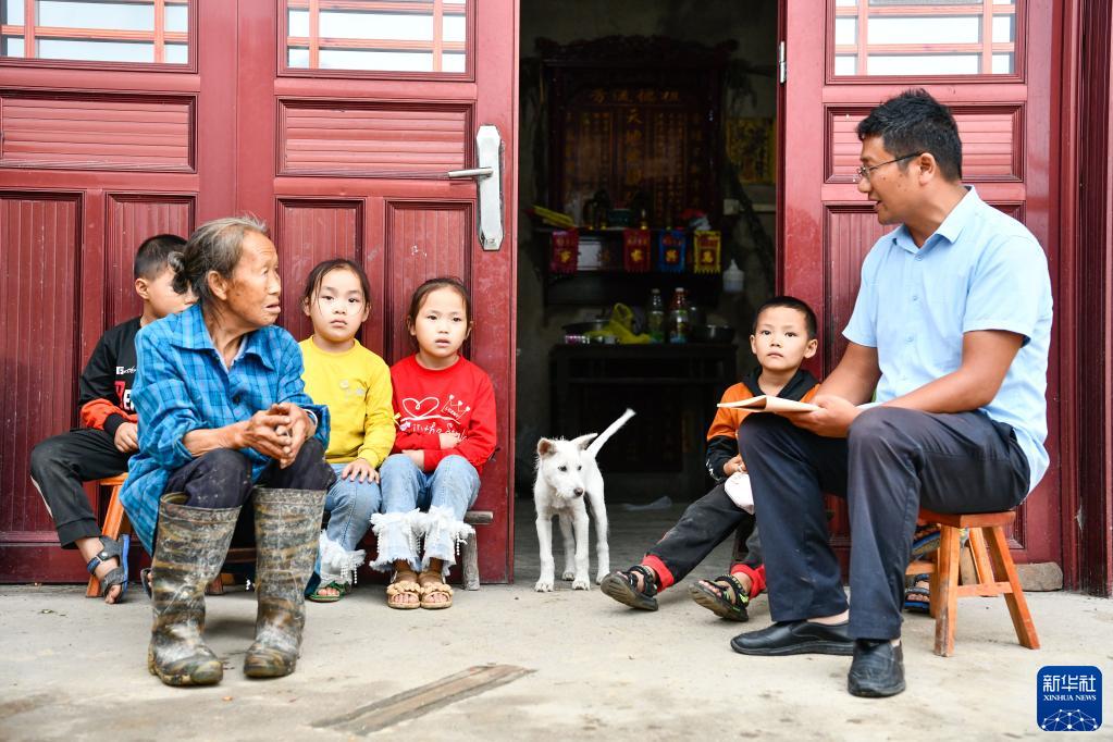 9月7日,贵州省镇远县报京乡松柏村坪玉教学点教师潘仲勇(右一)在家访。新华社记者 杨文斌 摄