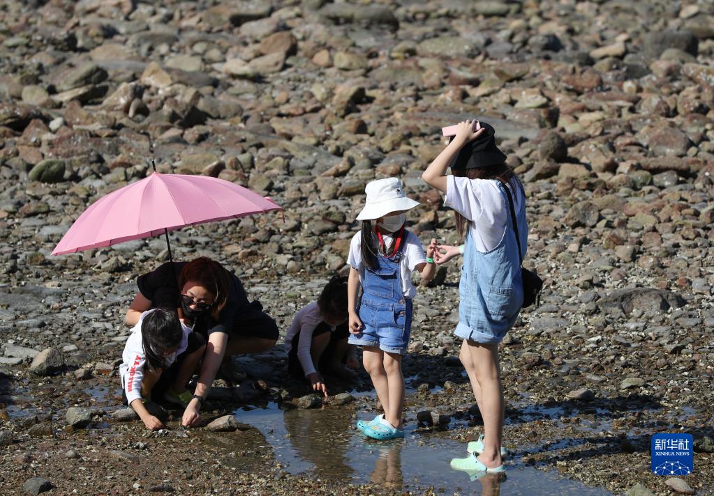 9月11日,家长带着小朋友在韩国仁川的乙旺里海水浴场附近玩耍。 新华社记者 王婧嫱 摄