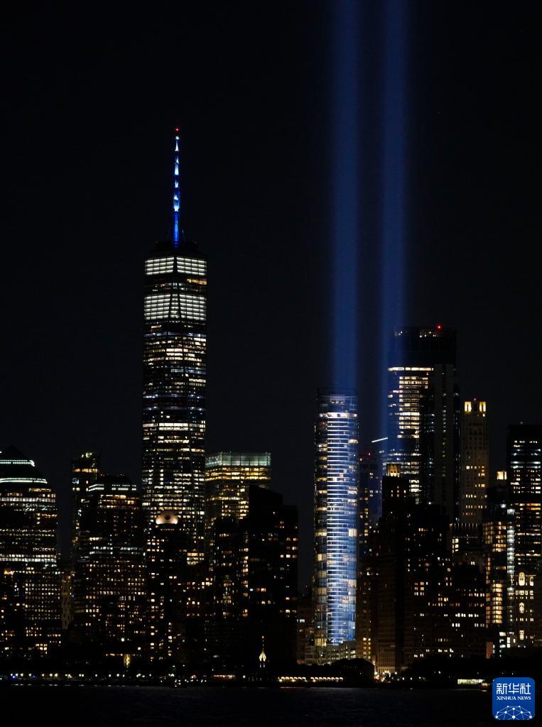 光柱纪念“9·11”恐怖袭击事件二十周年