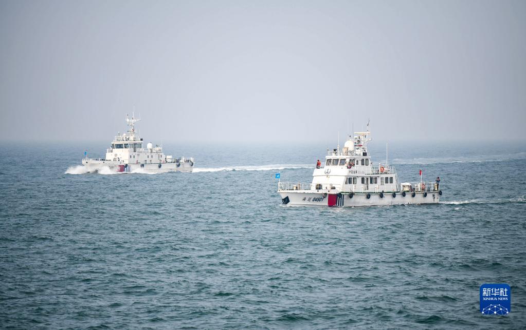 9月13日,在河北曹妃甸海域,海巡船只模拟平行搜救。 当日,由中国海上搜救中心主办、河北海事局承办的“2021年国家海上搜救无脚本实战演练”在河北曹妃甸海域举行。演练模拟大风天气导致的渔船沉没险情,综合协调救助直升机、无人机、智能无人艇等,模拟对海上遇险人员实施快速有效的搜寻救助,进一步检验和提升海上搜救实战能力。 新华社记者 金皓原 摄