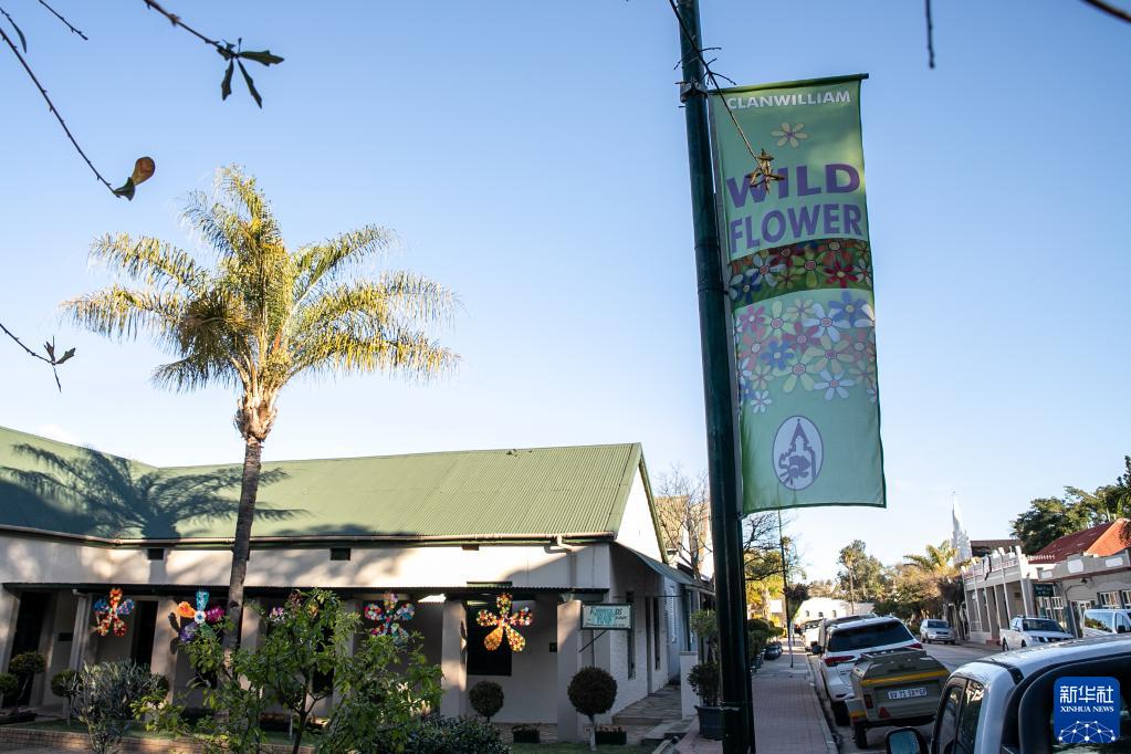 8月28日,在南非西开普省的克兰威廉小镇,带有“野花”字样的条幅悬挂在街头。