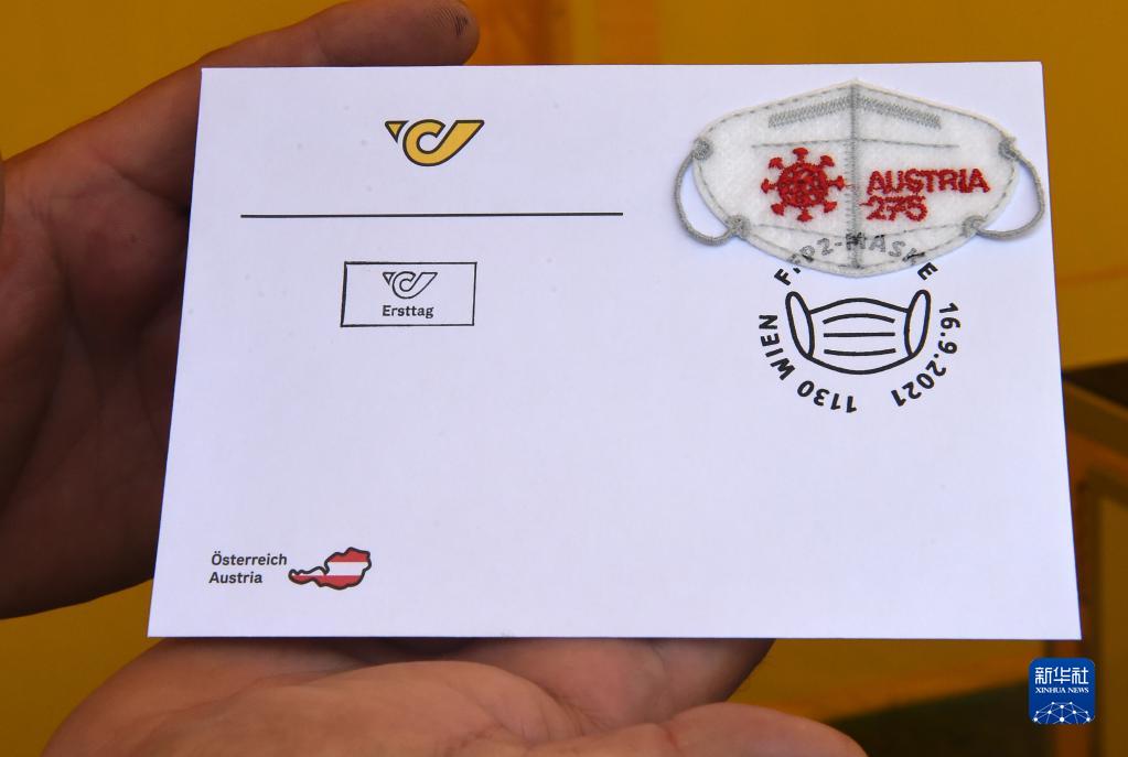 9月16日,奥地利邮政的工作人员在维也纳展示“迷你口罩”邮票。
