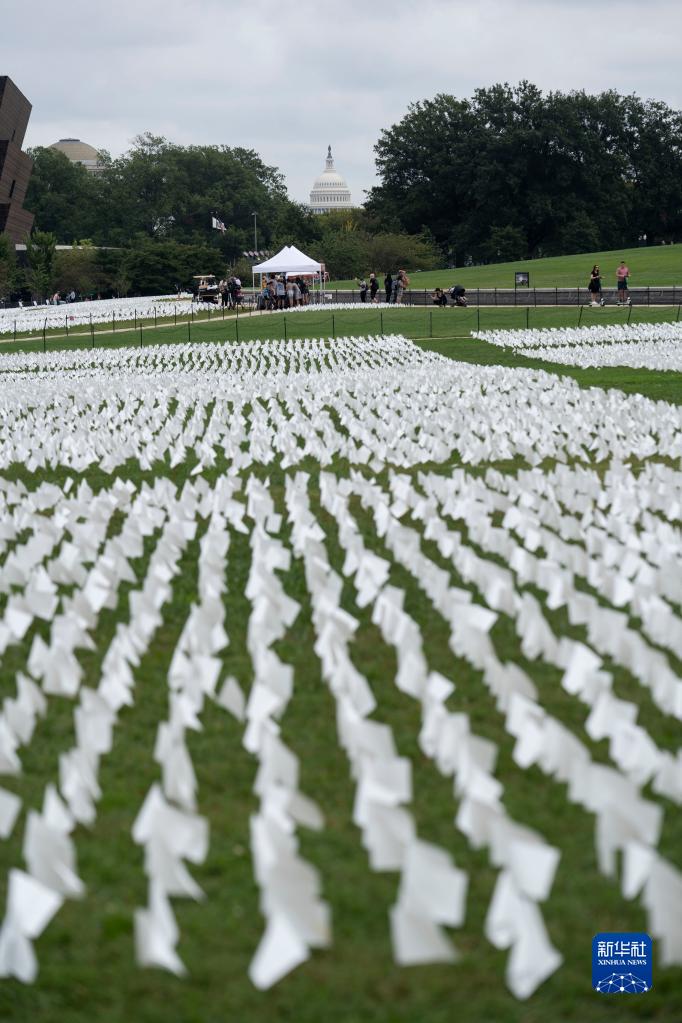 9月17日,超过66万白色旗帜摆放在美国首都华盛顿的华盛顿纪念碑附近的草坪上,悼念美国超过66万名新冠逝者。 7月中旬以来美国迎来第四波疫情。美国《华盛顿邮报》网站15日刊发的一篇报道说,截至本周,美国累计新冠死亡病例超过66.3万例,这意味着大约每500名美国人中就有1人死于新冠病毒。 新华社记者 刘杰 摄