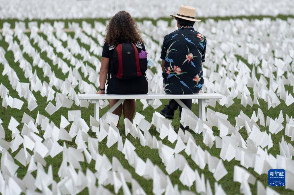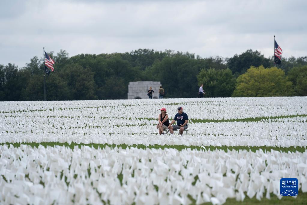 9月17日,在美国首都华盛顿的华盛顿纪念碑附近的草坪上,参观者坐在白色旗帜中间,悼念美国超过66万名新冠逝者。 7月中旬以来美国迎来第四波疫情。美国《华盛顿邮报》网站15日刊发的一篇报道说,截至本周,美国累计新冠死亡病例超过66.3万例,这意味着大约每500名美国人中就有1人死于新冠病毒。 新华社记者 刘杰 摄