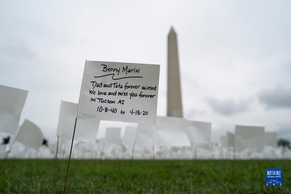 9月17日,写有“永远怀念你”字样的白色旗帜摆放在美国首都华盛顿的华盛顿纪念碑附近的草坪上,悼念美国超过66万名新冠逝者。 7月中旬以来美国迎来第四波疫情。美国《华盛顿邮报》网站15日刊发的一篇报道说,截至本周,美国累计新冠死亡病例超过66.3万例,这意味着大约每500名美国人中就有1人死于新冠病毒。 新华社记者 刘杰 摄