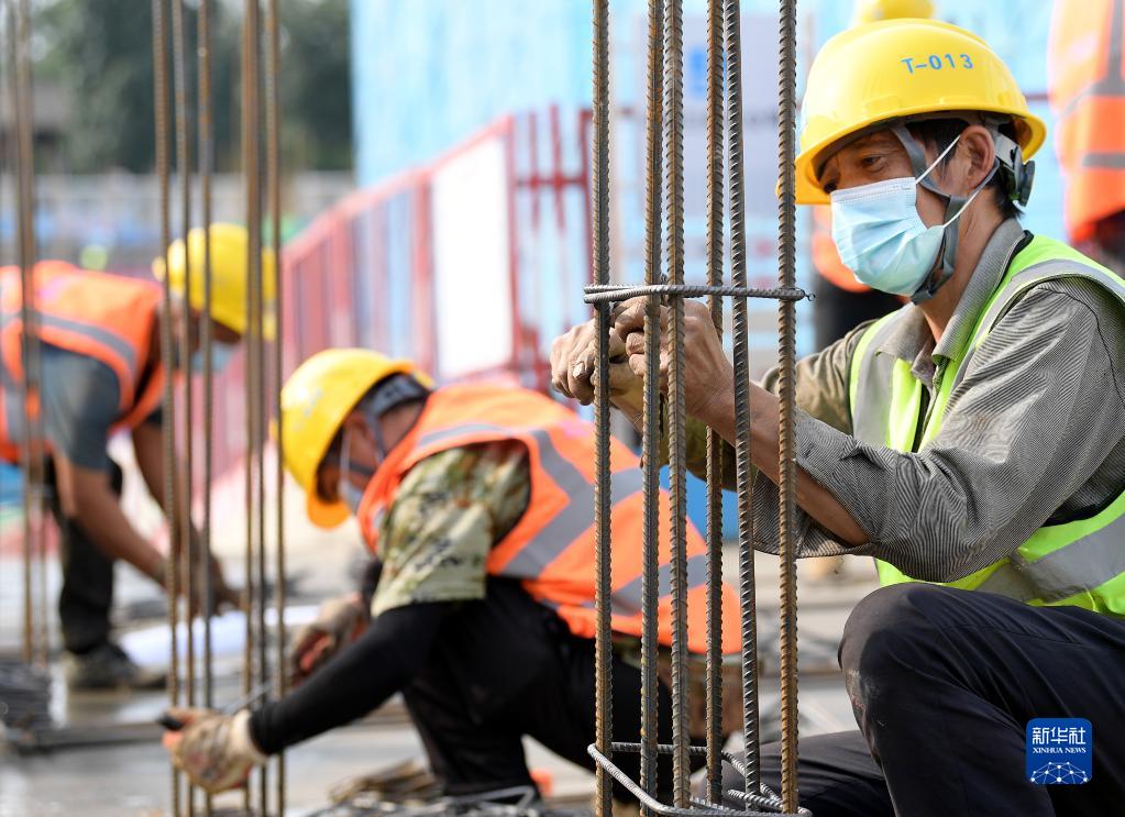 9月18日,工人们在进行梁柱钢筋绑扎比赛。 当日,中建三局三公司2021年第一届质量技能“比武”大赛在北京分钟寺项目工地上举行。在建项目工人进行了梁柱钢筋绑扎技能比赛,以质量和技能比赛迎接中秋佳节。 新华社记者 李贺 摄
