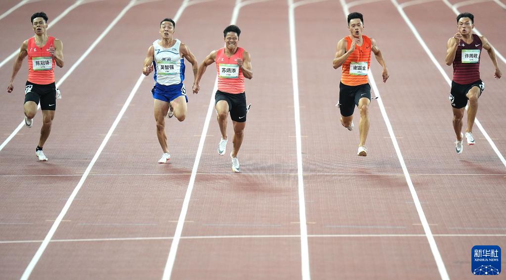当日,第十四届全运会田径项目男子百米决赛在西安奥体中心举行。