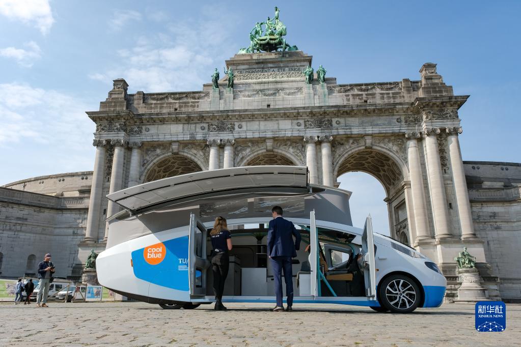 这是9月20日在比利时布鲁塞尔五十周年纪念公园拍摄的Stella Vita太阳能房车。