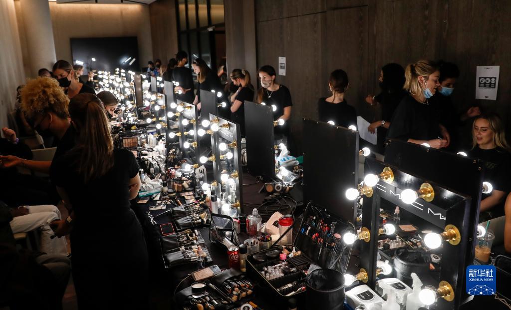 9月21日,模特、造型师等在英国伦敦时装周后台为理查德·奎因品牌走秀做准备。