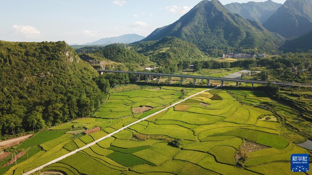 8月30日,在湖南省永州市道县清塘镇濂溪大洞,成片的水稻等待收割(无人机照片)。 新华社记者陈思汗摄