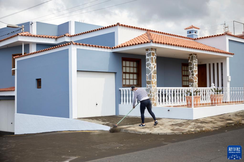 9月24日,一名居民在西班牙拉帕尔马岛清理火山灰。新华社记者 孟鼎博 摄