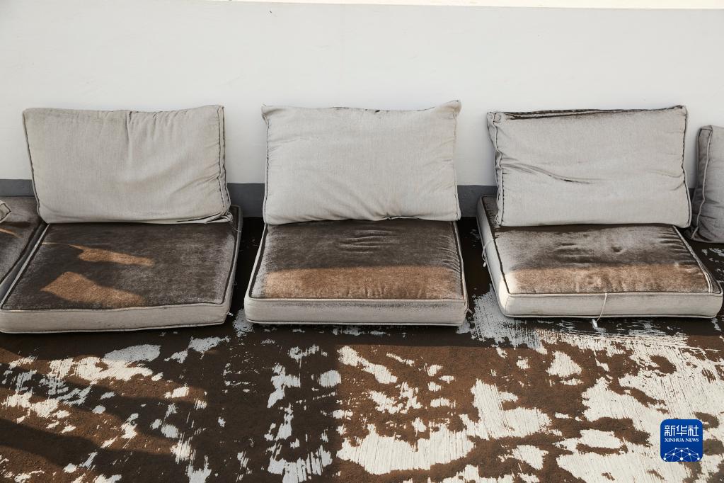 9月24日,西班牙拉帕尔马岛一户居民家的户外沙发被灰尘覆盖。 目前,已有超过400座房屋被火山流出的岩浆摧毁。 新华社记者 孟鼎博 摄