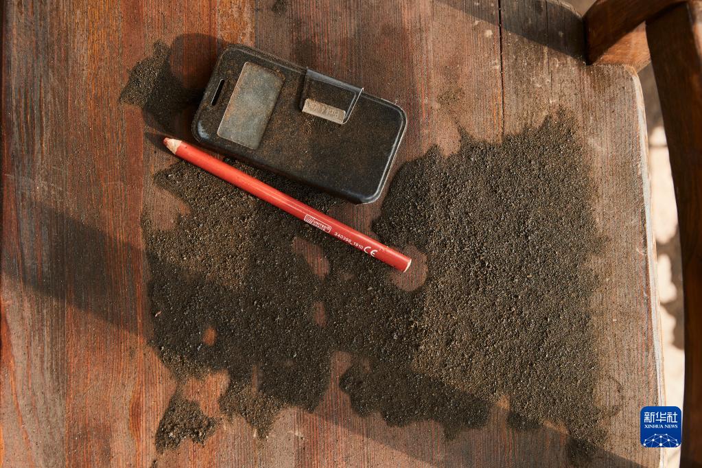 9月24日,西班牙拉帕尔马岛一户居民家的物品被灰尘覆盖。 目前,已有超过400座房屋被火山流出的岩浆摧毁。 新华社记者 孟鼎博 摄