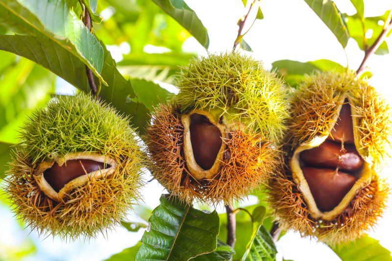 9月18日,丹东东港市卧虎村一处板栗园内,漫山遍野的板栗球挂满枝头“开口笑”,栗民们打板栗、捡板栗、去刺壳,开启一年中最忙碌的丰收季。