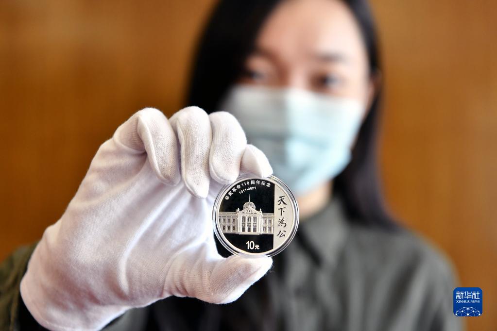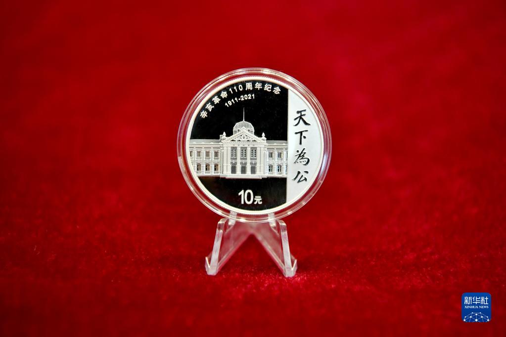 这是辛亥革命110周年银质纪念币正面(9月23日摄)。 中国人民银行9月27日发行辛亥革命110周年银质纪念币1枚。该银质纪念币含纯银30克,直径40毫米,面额10元,为中华人民共和国法定货币。 新华社记者 李鑫 摄