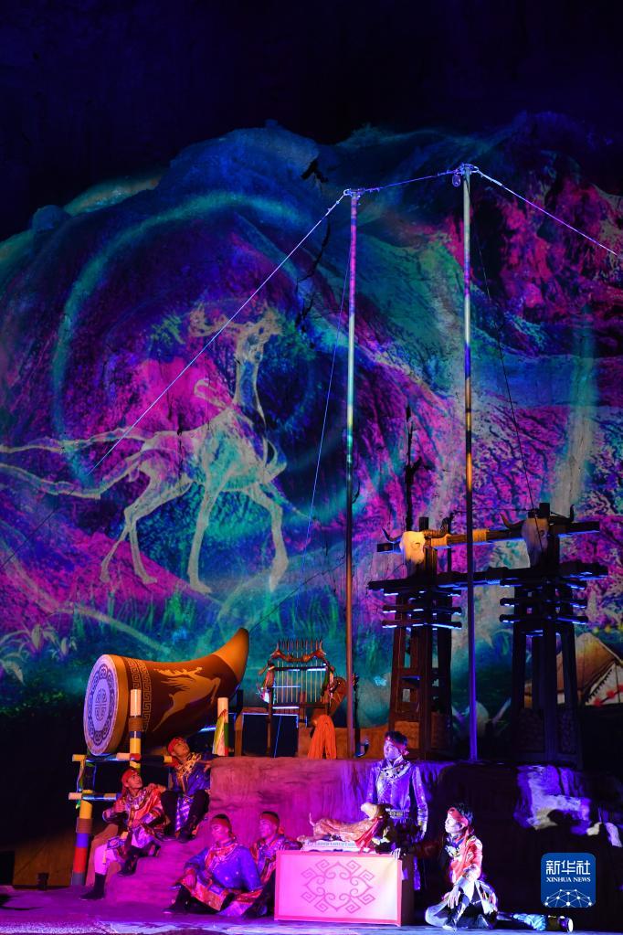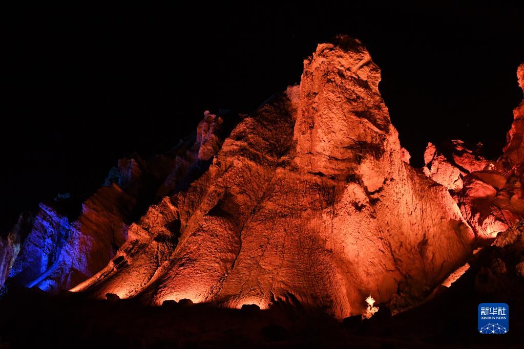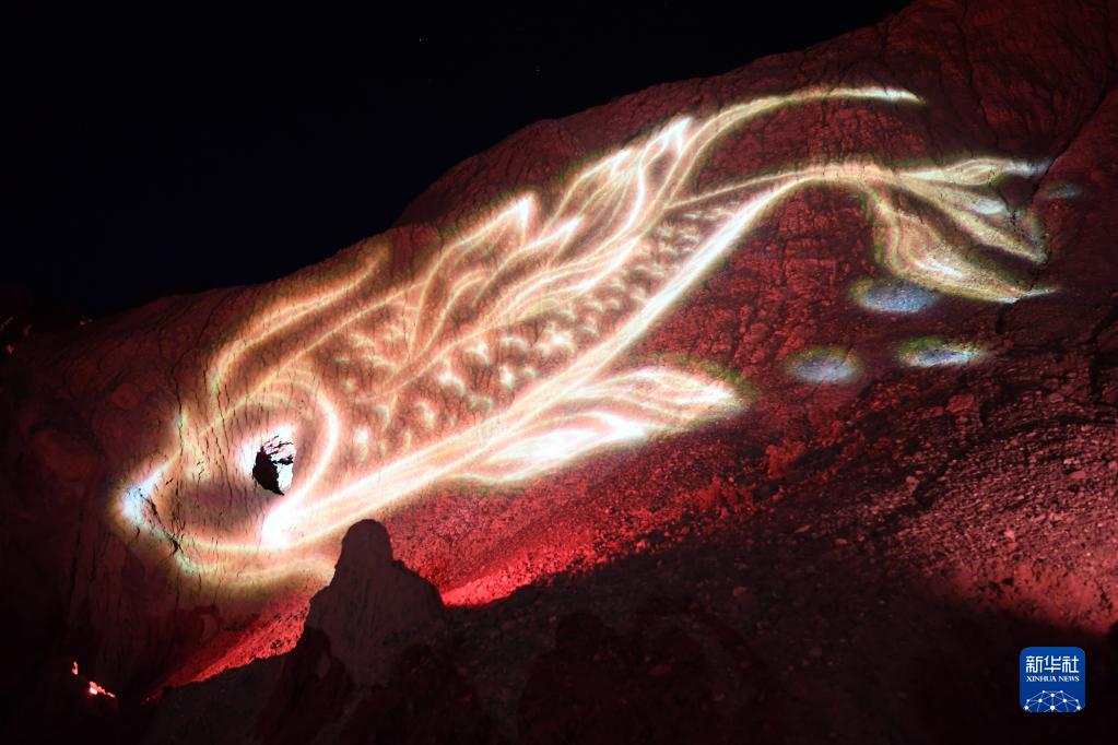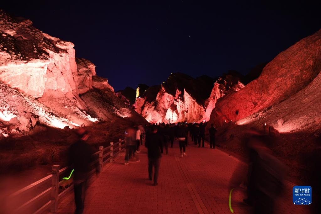 9月26日晚,在甘肃省张掖七彩丹霞景区,随着光影演绎的《阿兰拉格达》在万象土林谷景点正式亮灯,七彩丹霞“夜游”模式开启。据介绍,光影演绎的《阿兰拉格达》以当地裕固族流传的神话故事改编而成,将丹霞地貌景观与音乐灯光秀结合,让游客在夜间的七彩丹霞享受精彩纷呈的视觉盛宴和身临其境的互动体验。