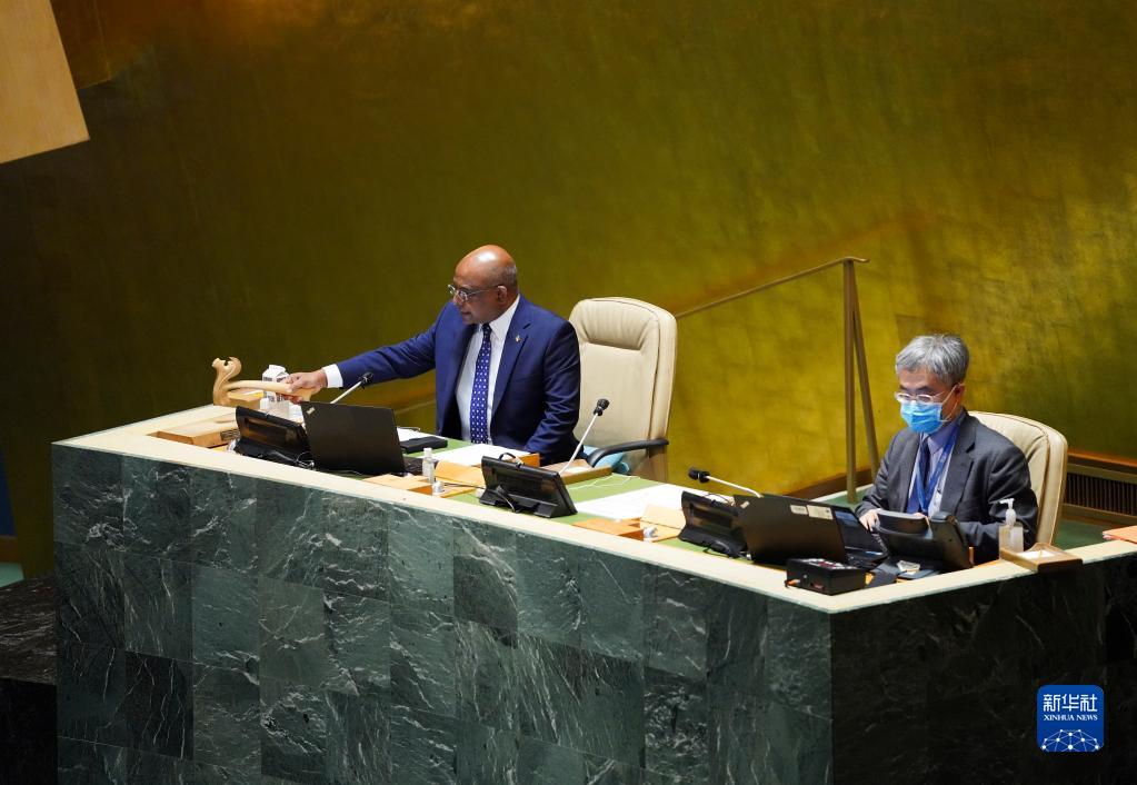 9月27日,在位于纽约的联合国总部,第76届联合国大会主席沙希德(左)宣布一般性辩论闭幕。新华社记者 王迎 摄 |