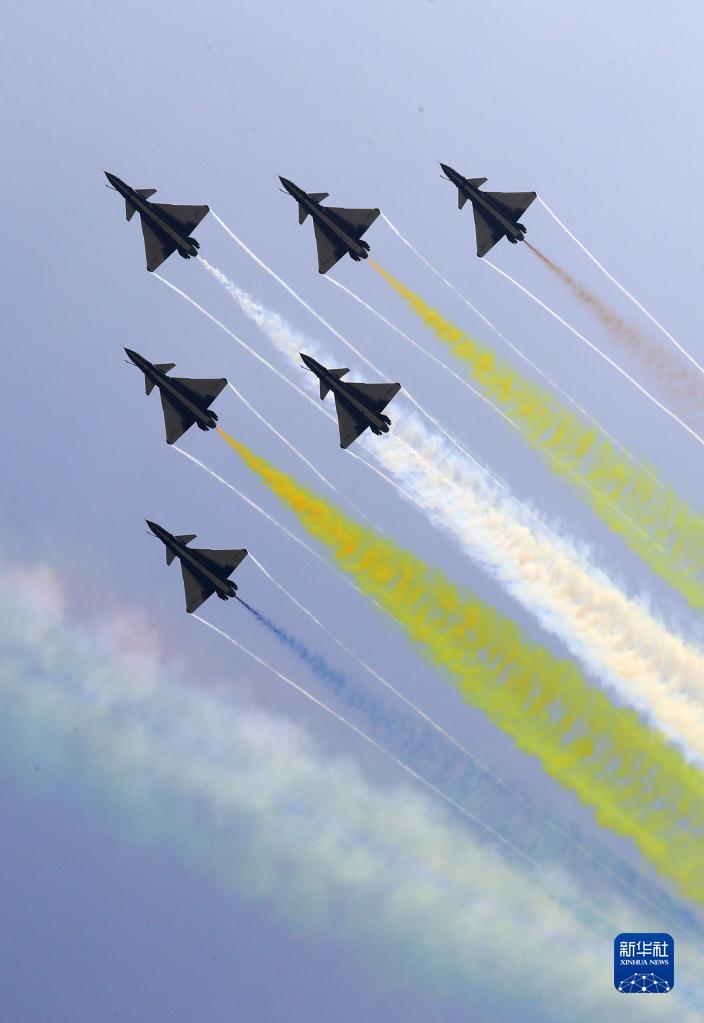 9月28日,中国空军八一飞行表演队在第十三届中国国际航空航天博览会开幕式上进行飞行表演。