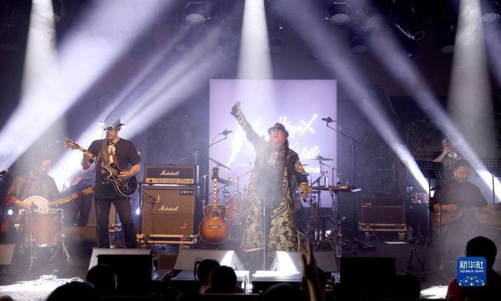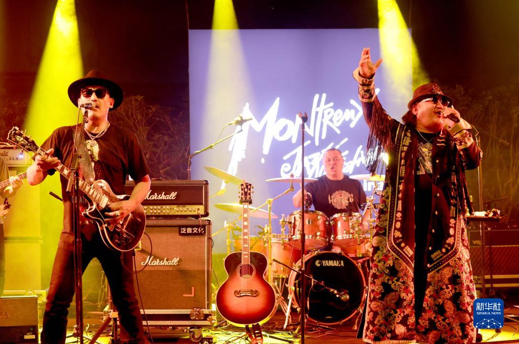10月6日,内蒙古摇滚乐队“杭盖乐队”在蒙特勒(中国)爵士音乐节上演奏。 蒙特勒爵士音乐节是全球历史最悠久、专业水准最高的音乐节之一。受全球疫情的影响,原本2020年就应举办的蒙特勒(中国)爵士音乐节推迟到今年举办,原计划吸引超万人观众的演出规模也不得不压缩到仅仅几百人,海外一些著名乐队也无法抵达杭州现场演出。 国庆假期期间,蒙特勒(中国)爵士音乐节采取“小而精”的方式,选择在西湖旁边的一家酒店,举办了9场沉浸式演出,其中包括邀请格莱美奖获得者在内的中外音乐家到场演出,给观众带来了一场音乐盛宴。 新华社记者 陈建力 摄