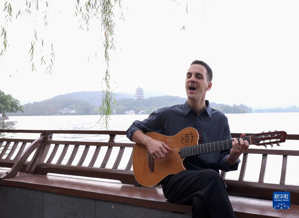 10月7日,格莱美获奖者里卡多·福格特在西湖游览时弹唱。 蒙特勒爵士音乐节是全球历史最悠久、专业水准最高的音乐节之一。受全球疫情的影响,原本2020年就应举办的蒙特勒(中国)爵士音乐节推迟到今年举办,原计划吸引超万人观众的演出规模也不得不压缩到仅仅几百人,海外一些著名乐队也无法抵达杭州现场演出。 国庆假期期间,蒙特勒(中国)爵士音乐节采取“小而精”的方式,选择在西湖旁边的一家酒店,举办了9场沉浸式演出,其中包括邀请格莱美奖获得者在内的中外音乐家到场演出,给观众带来了一场音乐盛宴。 新华社记者 陈建力 摄