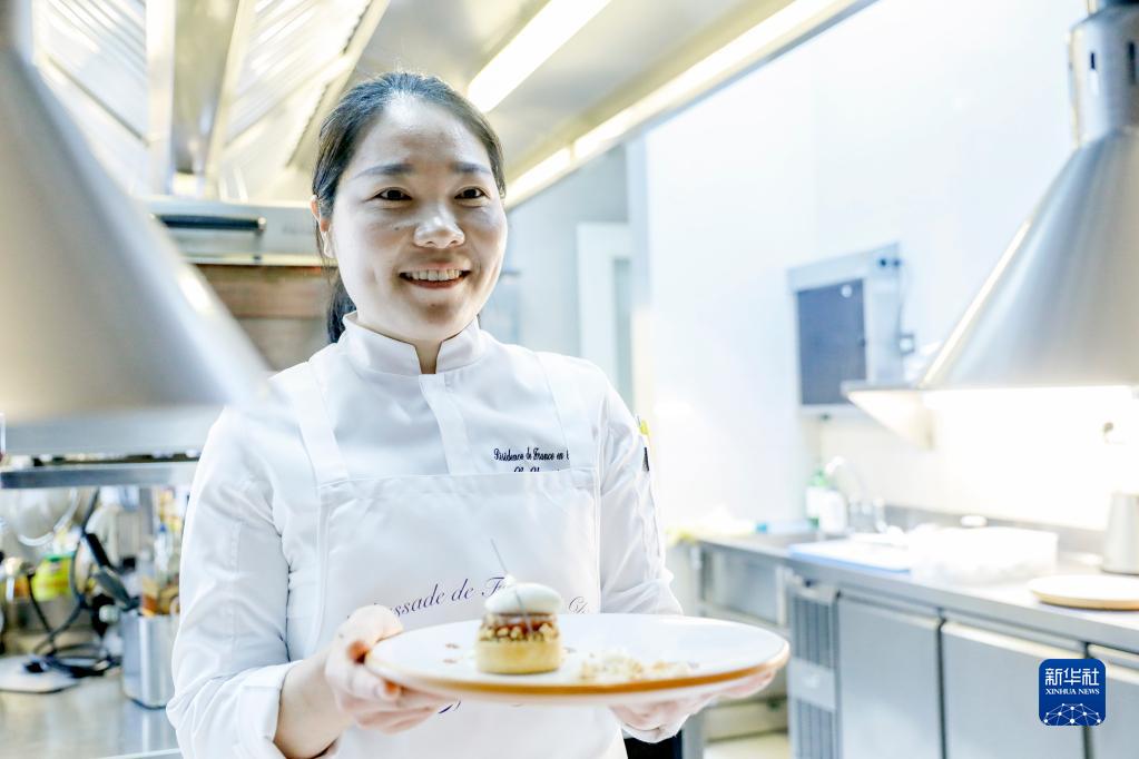 10月8日,厨师在现场进行摆盘装饰。 当日,第六届“好味法兰西”发布活动在北京举行,北京和青岛的多家合作餐厅代表、众多美食博主等出席了本次活动。本届“好味法兰西”活动将于2021年10月14日至22日举行。 新华社记者 张玉薇 摄
