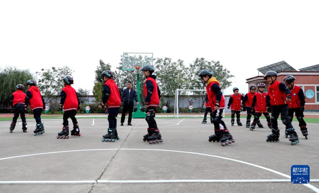 10月8日,河北省邢台市任泽区达二小学学生在练习轮滑。新华社记者 骆学峰 摄