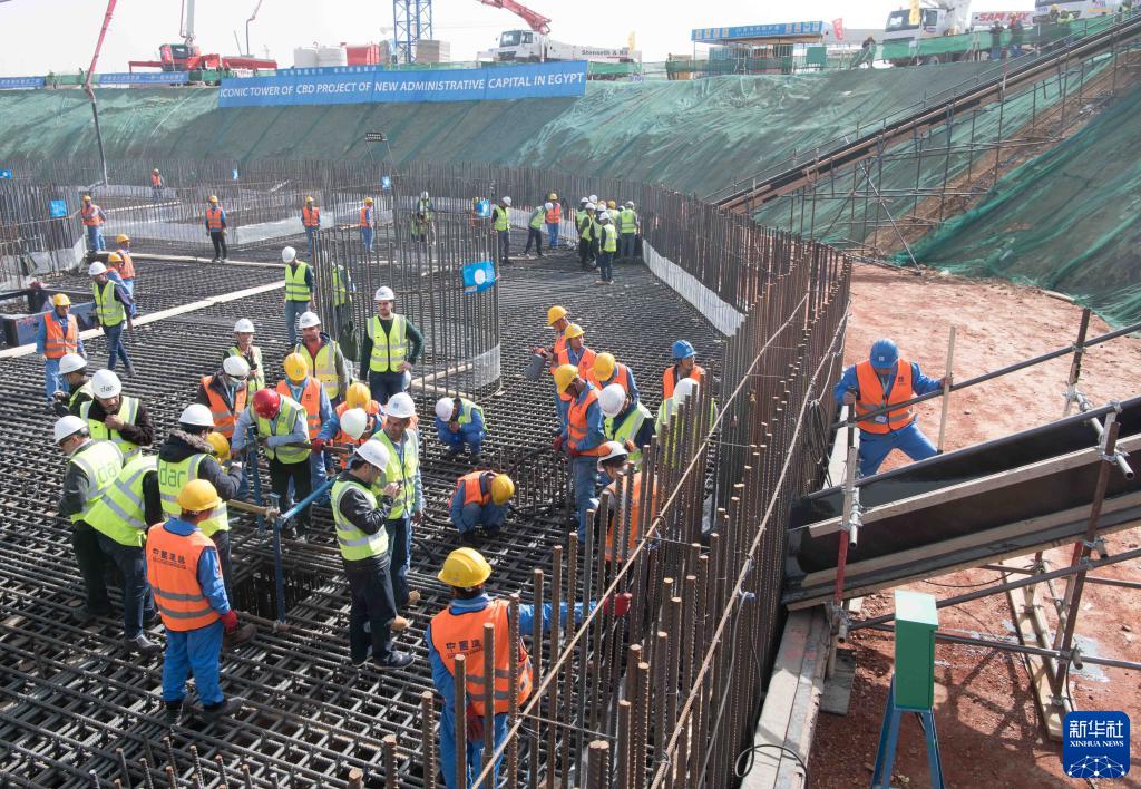 这张2019年2月25日的资料照片显示的是工人在埃及新首都中央商务区项目建设现场工作。