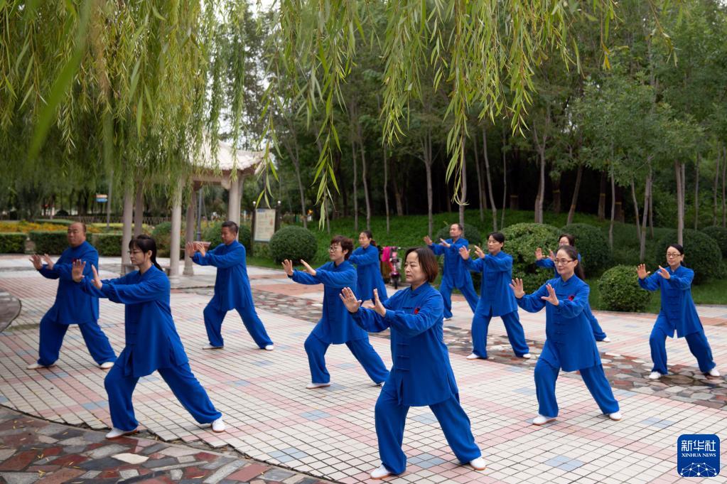 10月10日,市民在黄骅市文星湖公园练习太极拳。 河北省黄骅市地处渤海之滨,土壤盐碱化程度高。近年来,当地在城市建设中秉持自然、生态、节约理念,对散落在城市各处的废弃坑塘、洼地等进行扩挖、改造,实施一系列治理盐碱措施,建成公园、游园80余处,绿化面积不断增加,改善了城市生态环境,拓展了市民休闲娱乐空间。 新华社记者 骆学峰 摄
