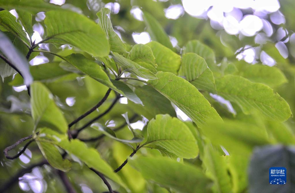 这是10月8日在成都市龙泉山城市森林公园(龙泉驿段)拍摄的香果树枝叶。 近期,中国科学院成都生物研究所团队在成都市龙泉山城市森林公园野外调查发现,该公园龙泉驿段生长着35株香果树。香果树是第三纪孑遗植物,是我国特有的单种属植物。 新华社记者 刘坤 摄