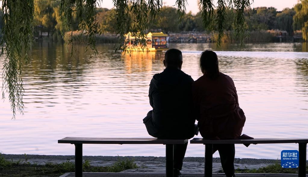 当日,北京秋高气爽,圆明园遗址公园水波潋滟,景色宜人。