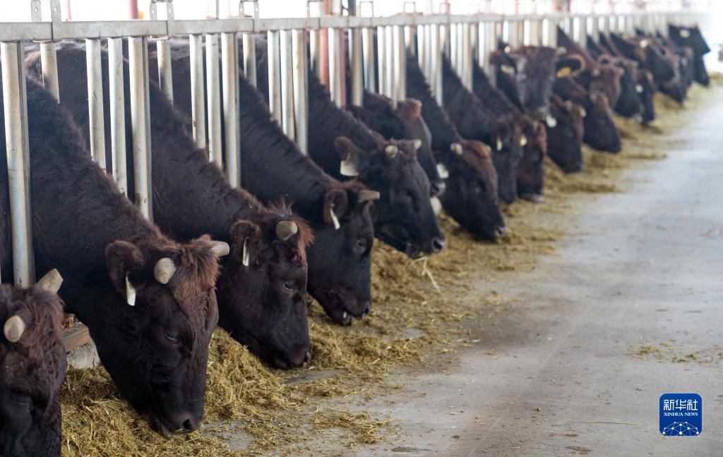 10月10日,在山东省临清市澳和牧业有限公司,“运河黑牛”在进食。 山东省临清市将“运河黑牛”作为农业重点工程,以牧场、冷链物流中心等为核心,采用“公司+合作社+家庭牧场+农户”产业化合作模式,带动临清及周边县市开展养殖。截至2020年底,临清市养殖“运河黑牛”5000余头,养殖等产业同时也提供了大量就业岗位。 新华社记者 才扬 摄