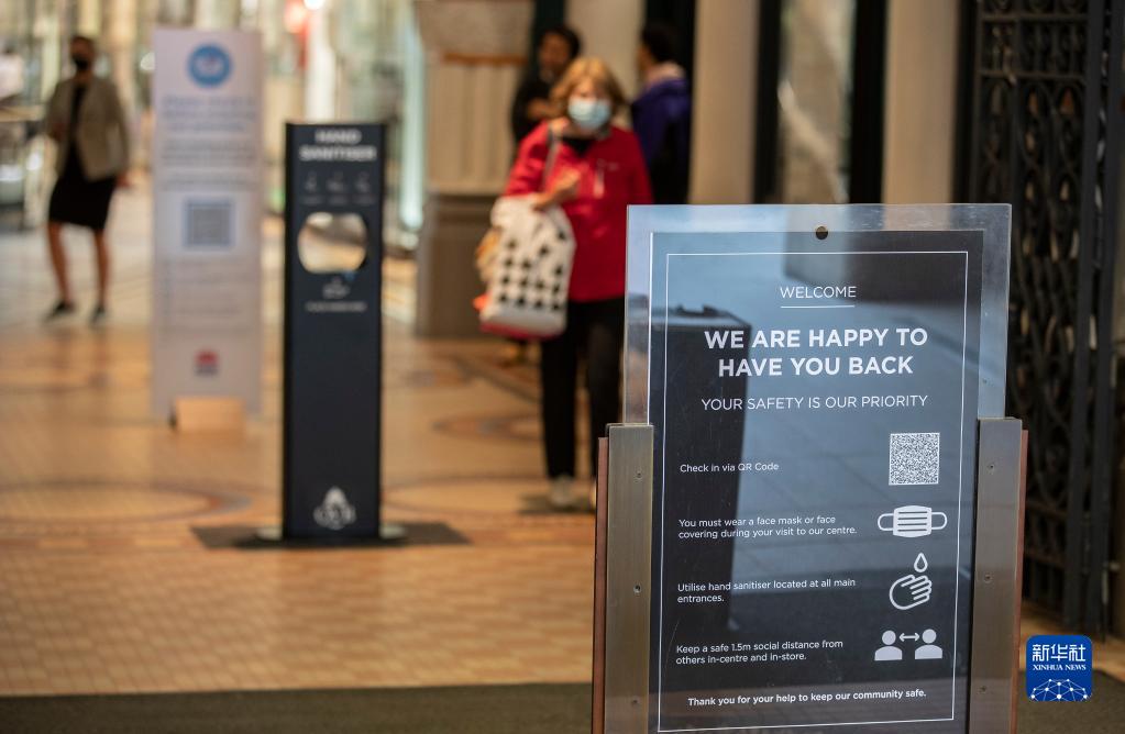 这是10月11日在澳大利亚悉尼市中心一座商场门口拍摄的防疫提示。